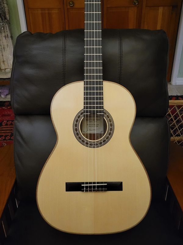 Currently building a 1937 Hauser Spanish classical guitar. This wedged neck joint gives the strongest neck to body joint for maximum sustain ad resonance. Current build is Black Limba back and sides. European spruce top. Spanish cedar neck. Indian ebony fretboard and Indian rosewood bridge.
